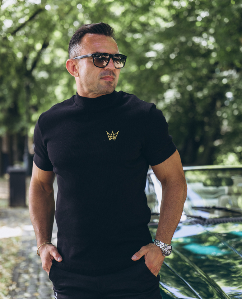 Koszulka Krótka Paco Slim Fit Czarna – Złota Korona