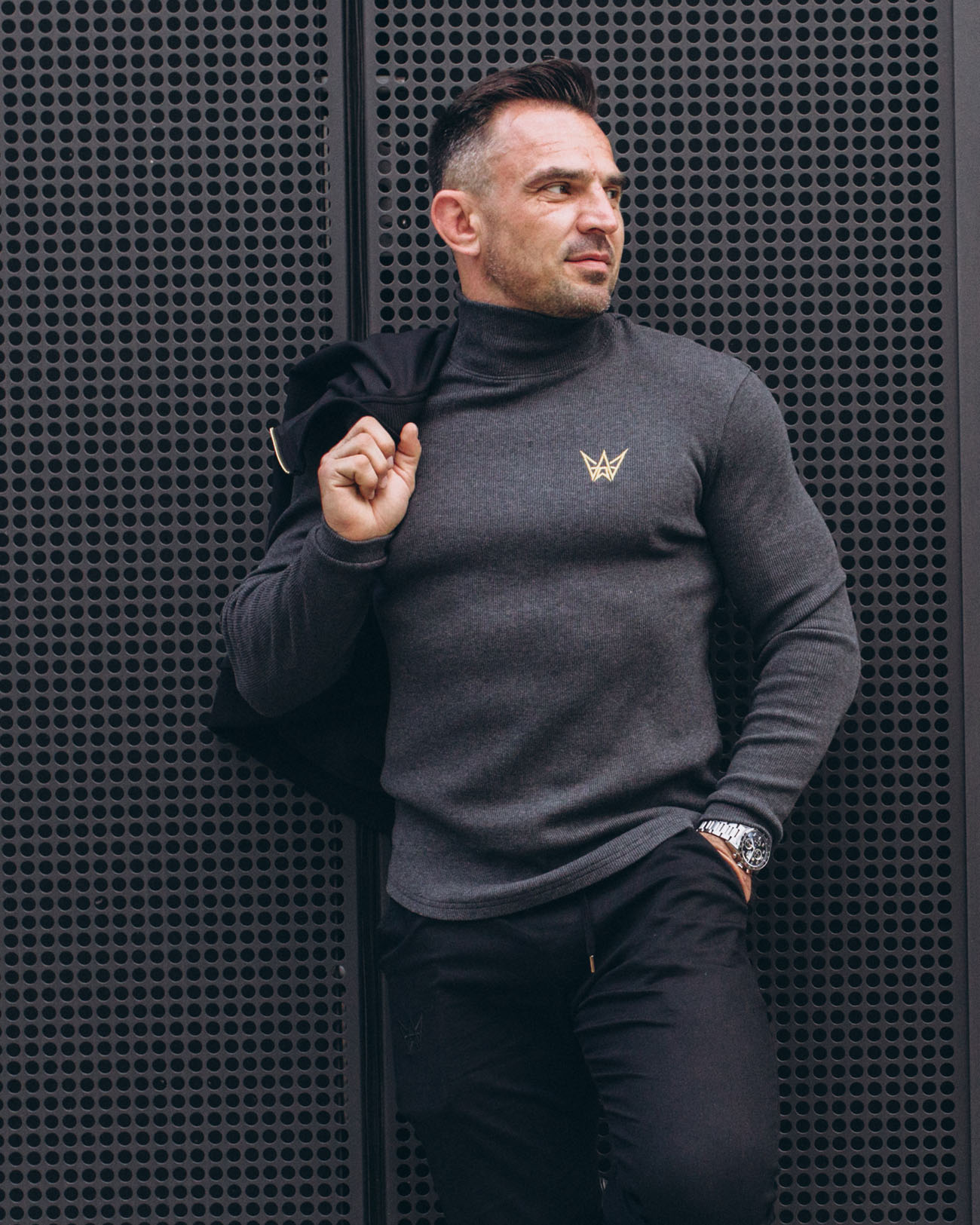 Longsleeve Zipneck Czarny – Złoty Zamek