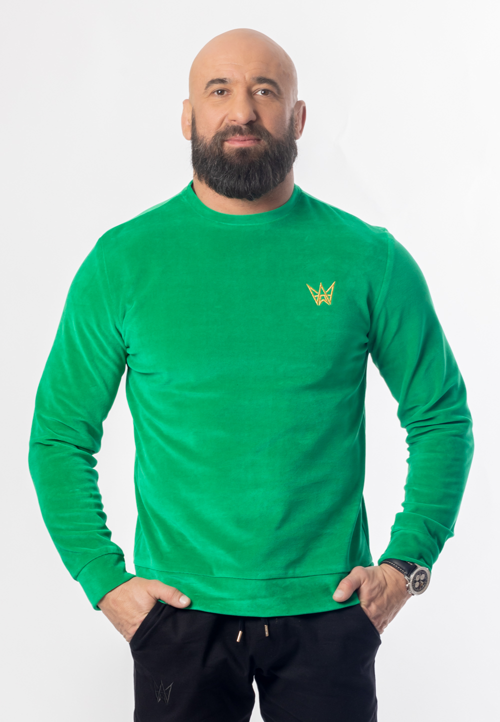 Lekka bluza welurowa bez kaptura w energetycznym zielonym kolorze. Wygodna i stylowa stanowi doskonałe uzupełnienie codziennej garderoby. Charakterystyczna faktura weluru dobrze komponuje się z różnymi outfitami. Prostotę tego modelu przełamuje złote logo Tres Amigos widoczone na przedniej części bluzy. Model bluzy dopasowany do sylwetki z okrągłym dekoltem.