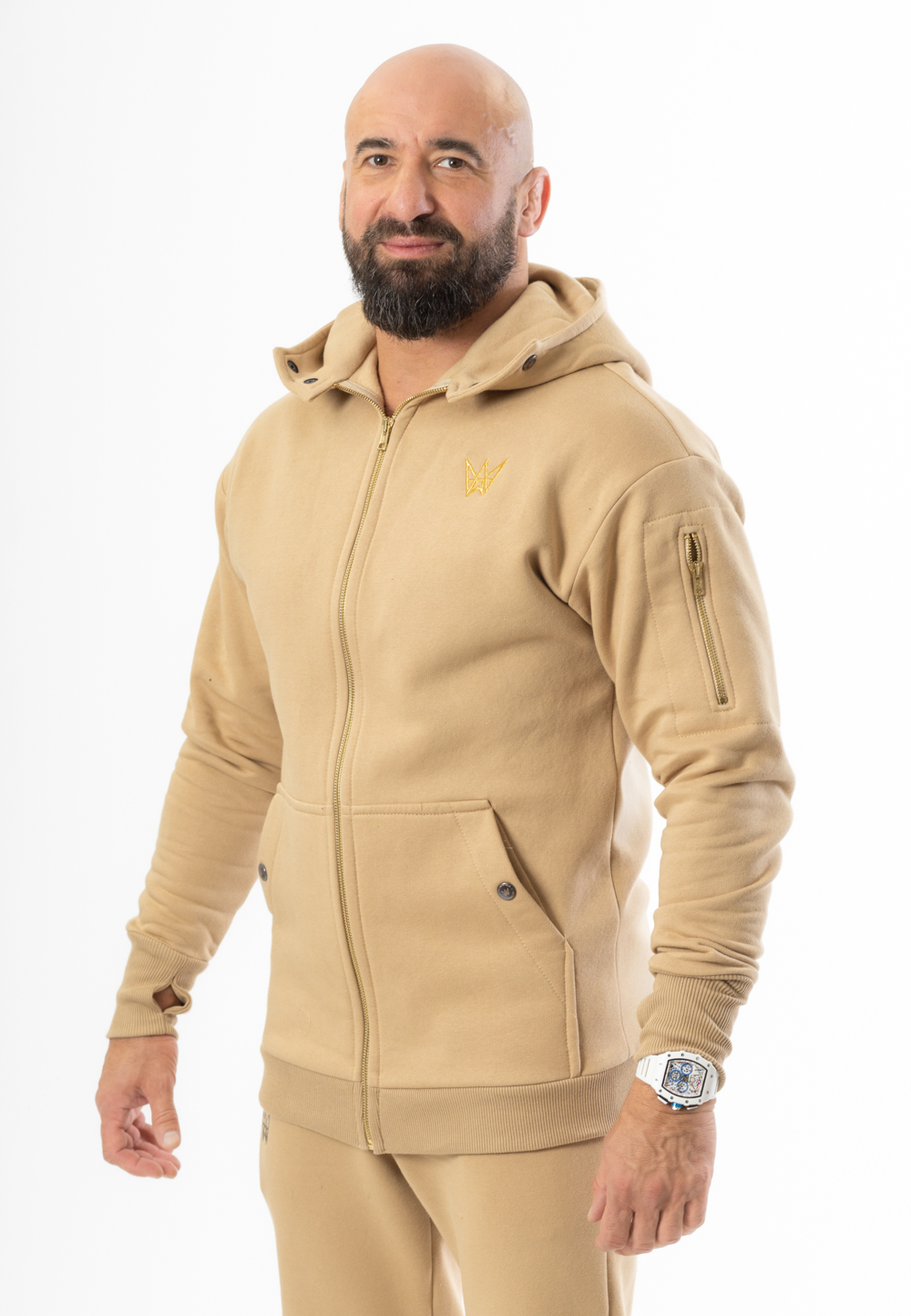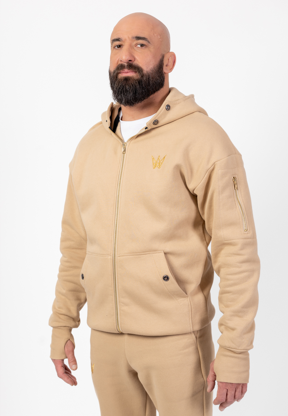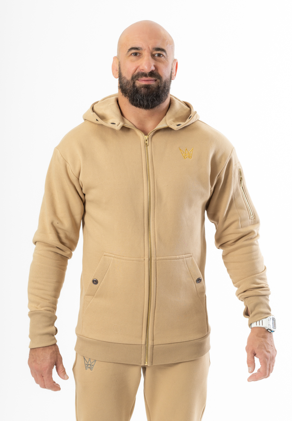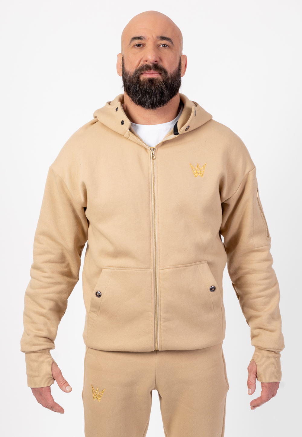 Model Grizzly 2w1 - Beżowa gruba bluza męska z kapturem