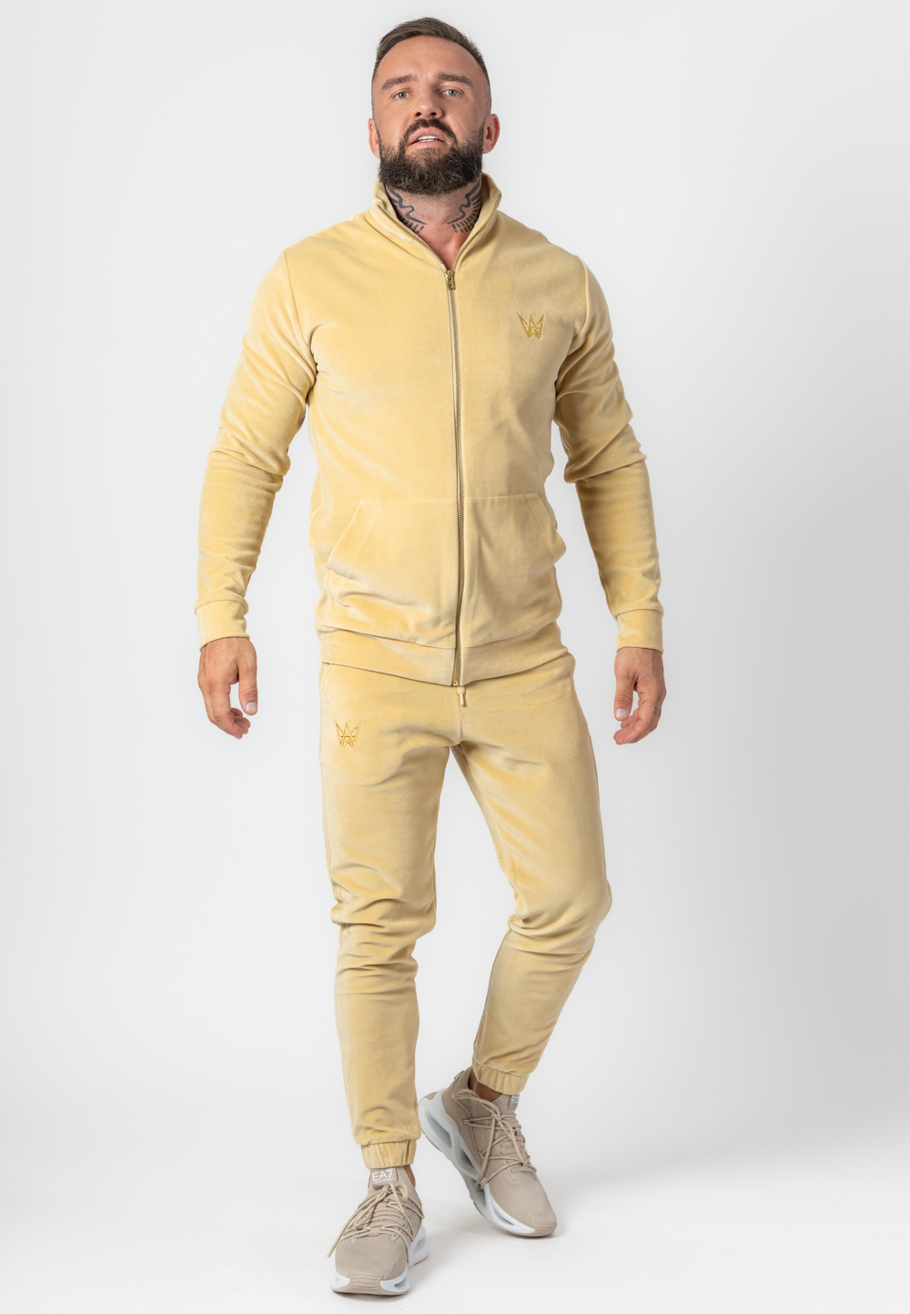 Basicowa bluza z miękkiego weluru w kremowym kolorze. Welur jest miękki i elastyczny, a jednocześnie odporny na zagniecenia, co zapewnia wygodę i łatwość w pielęgnacji. Doskonale komponuje się z welurowymi spodniami lub szortami, ale także z jeansami i sportowymi butami. Idealna na chłodne dni – golf skutecznie chroni przed zimnem, a w zestawieniu z kurtką nie potrzebujesz szalika.