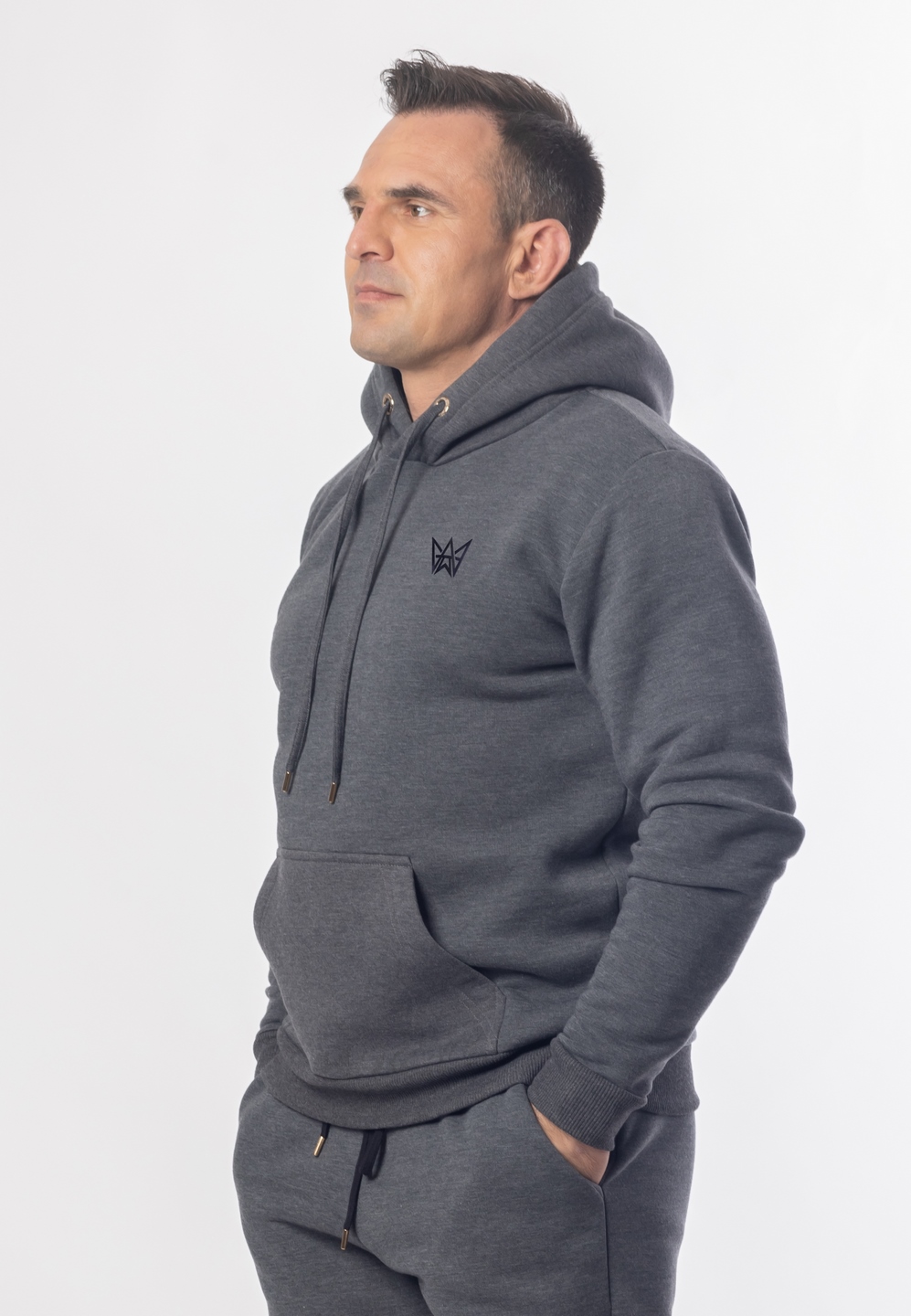Szara bluza męska – kangurka z czarnym logo Tres Amigos