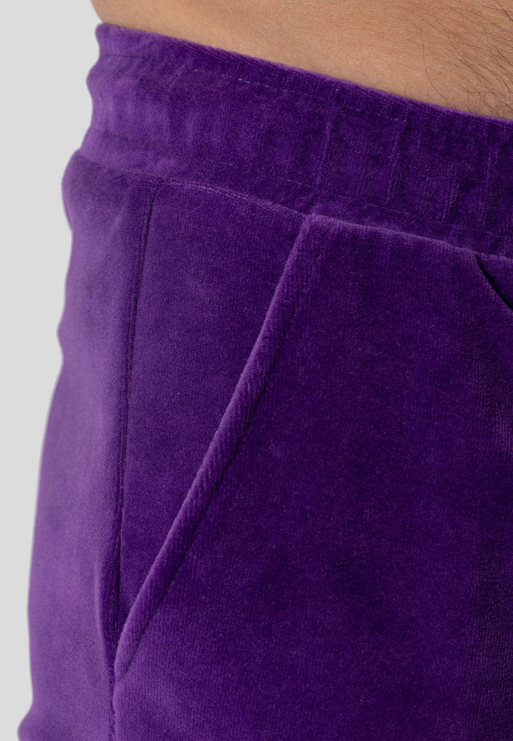 Produkt został wykonany z popularnego fioletowego weluru, znakomitego ze względu na liczne zalety. Oprócz stylowego wyglądu, te męskie dresy welurowe charakteryzują się miękkością, elastycznością i doskonale prezentują się na męskiej sylwetce. Nie wymagają prasowania, ponieważ welur nie tworzy zagnieceń. Wyróżnieniem tego modelu jest elegancki fioletowy kolor. Złote akcenty dodają całości oryginalności.