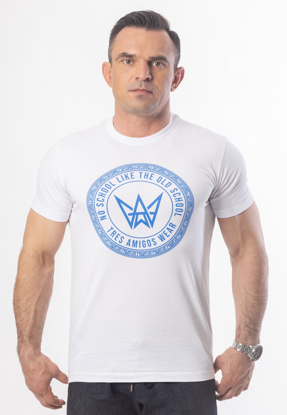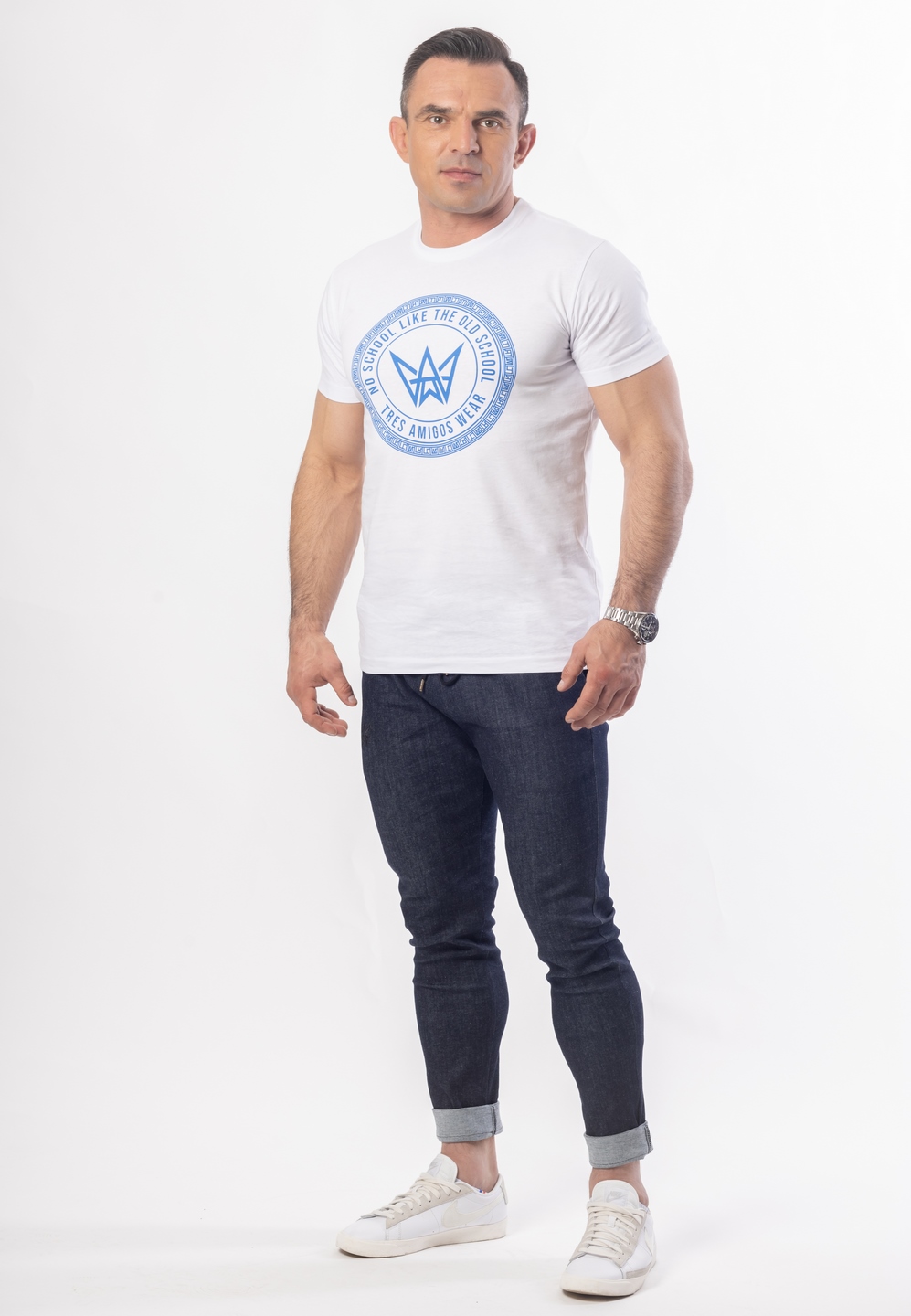 Biały męski T-shirt z niebieskim logo Tres Amigos