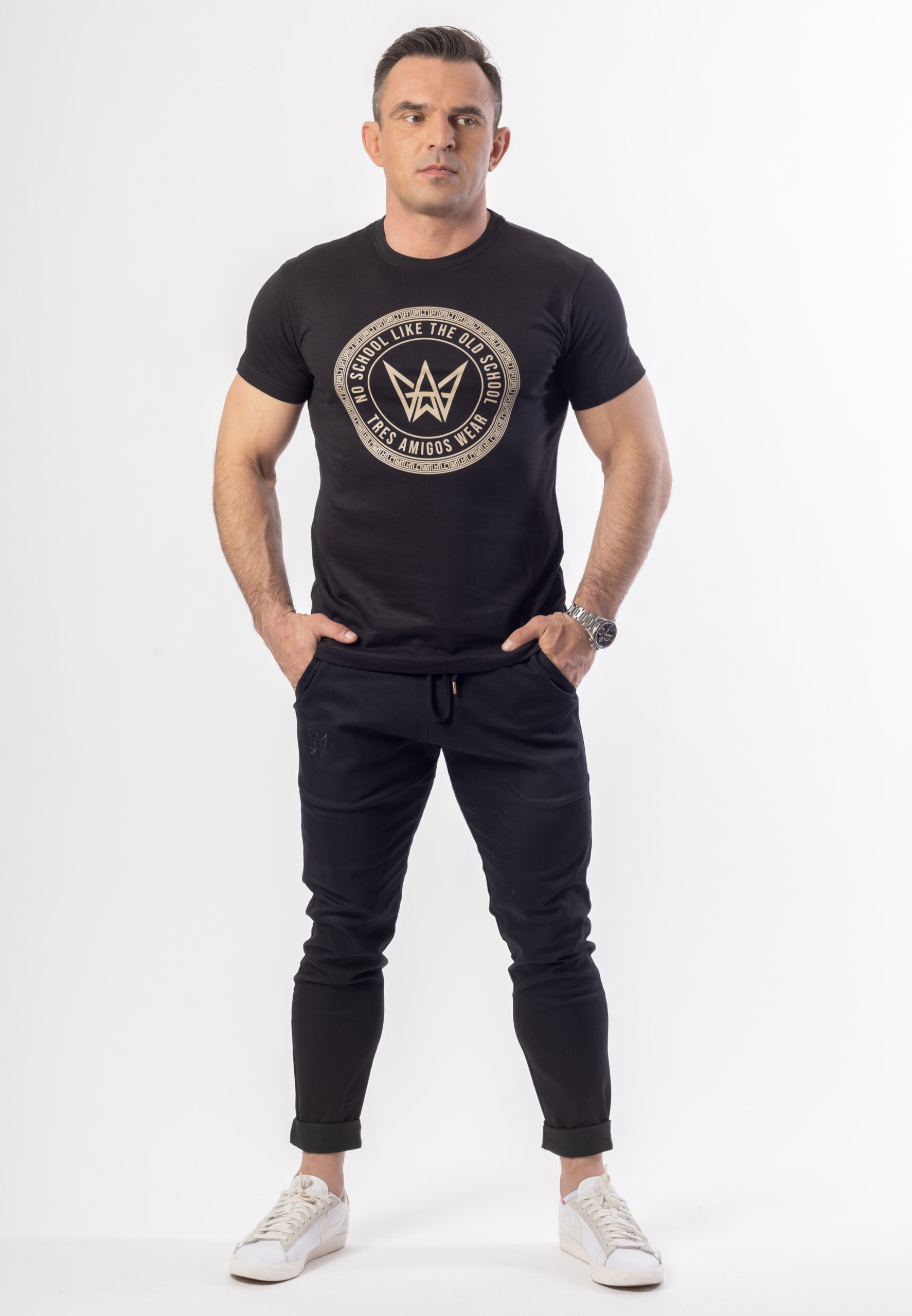 Czarny T-shirt męski z beżowym logo Tres Amigos