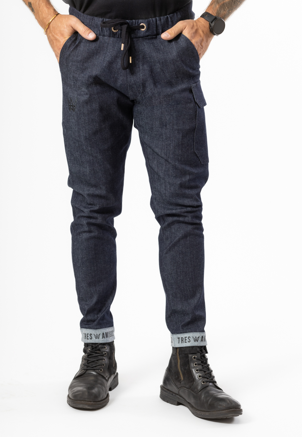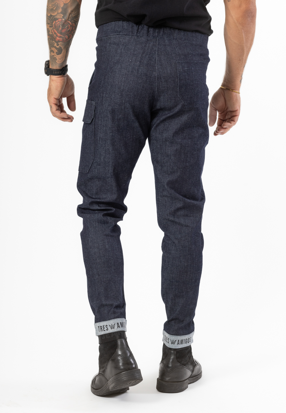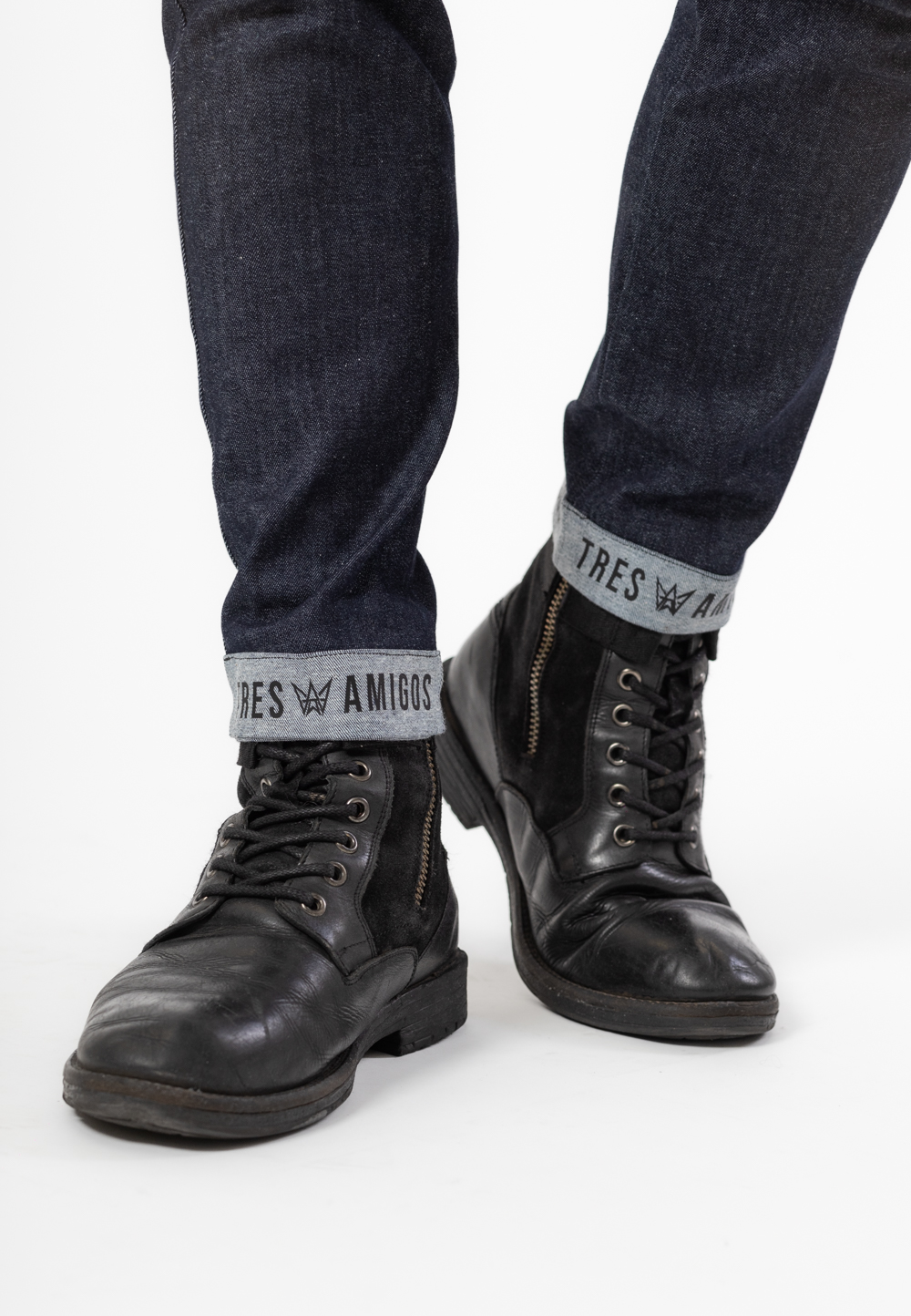 Granatowe elastyczne jeansy męskie z logo Tres Amigos
